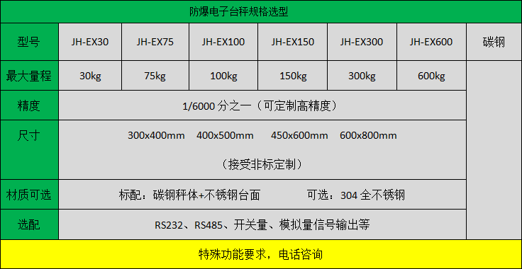 佳禾EX系防爆電子臺秤:是專為化工、醫藥、倉儲等有爆炸性氣體和爆炸性粉塵環境而設計的專產品