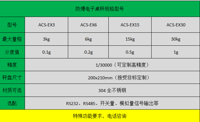 ACS系列防爆桌秤(案秤)是一款專為化工、醫藥、食品加工等工業場合設計的高精度小量程產品。秤體工業采用不銹鋼秤盤與整機碳鋼結構、高清大屏幕清晰按鍵,特別適用于爆炸性氣體環境和可燃性粉塵環境。
