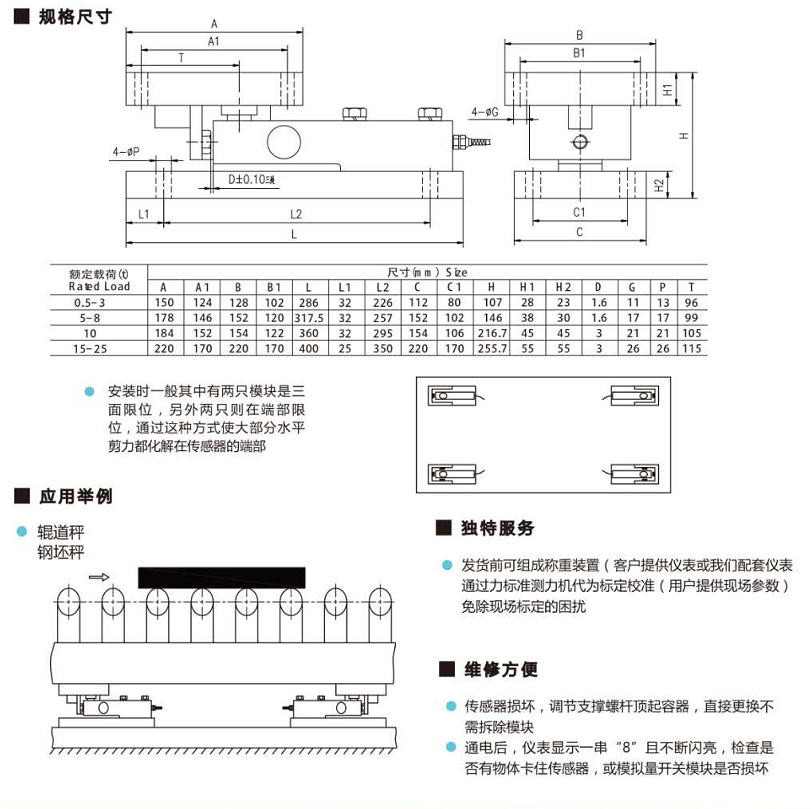 動(dòng)載稱重模塊主要應(yīng)用于既有垂直力又有水平力,而且水平力又較大的場(chǎng)合。動(dòng)載模塊只有一種結(jié)構(gòu)型式,由3個(gè)、4個(gè)或更多組成一個(gè)稱量系統(tǒng)。動(dòng)載模塊同樣有合金鋼及不銹鋼可選,應(yīng)用于不同的環(huán)境條件。